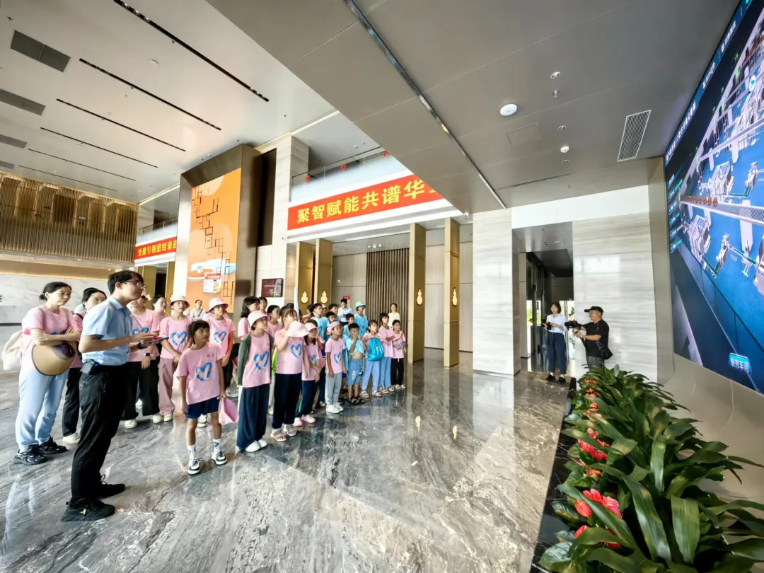 活动一开始,孩子们便迫不及待地踏入了东升国际药业集团的大厅。3D数字化看板上的生动画面,让孩子们仿佛置身于一个充满科技与创新的现代制药工厂。他们瞪大眼睛,好奇地观察着每一条生产线、每一台设备,听着讲解员介绍东升国际药业的儿药发展历程。